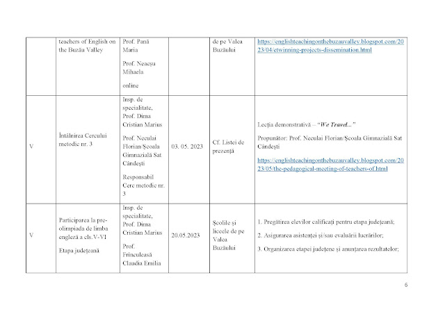 Raport privind activitatea Cercului metodic nr. 3 (Zona Valea Buzăului) în anul școlar 2022-2023